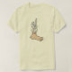 Dieses ist die Beschreibung vom glücklichen das Kaninchen mit seinem glücklichen Shirt des menschlichen Fußes.