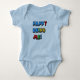Blue Baby Bodysuit mit farbenfrohen Primärfarbbriefen" Happy Being Me" großartige Geschenkidee für eine Babydusche oder offenbaren Party.