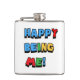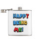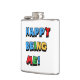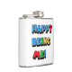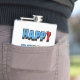 Flasenweiß mit großen hellen Primärfarbbuchstaben. "Happy Being Me"