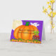 Eine sehr niedliche Halloween-Karte für eine Urenkelin mit lila Hintergrund mit Vollmond auf den links, ein großer Kürbis im Vordergrund mit den Worten "Happy 1st Halloween Great-Enkelin" in der Mitte, ein Kerzenapfel auf der Seite und Kürbis am Boden.