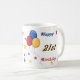 Glückliche 21. Geburtstags-Tasse macht eine große Geschenkidee für jedermann, das 21 Jahre alt dreht. Die Ausrüstungsbeschreibungen drei Ballone ein Rot, Gelb und Blau. Der Entwurf hat auch drei Sterne in jedem der zusammenpassenden Farben und des Textes "glücklicher (blauer Text) 21. (gelber Text) Geburtstag (roter Text)". Der Entwurf war am Samstag das 4. vom Juni 2011 entworfen. Es ist ein ursprünglicher Entwurf Sketchart26 unter Verwendung etwas von ihren eigenen Grafiken (Sterne u. Text) sowie Grafik (Ballone) durch Trina Clark http://digiscrapkits.com/digiscraps/