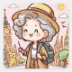 Glückliche ältere Frau, die die Welt bereist Quadratischer Aufkleber