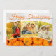 Diese schöne, moderne Familienfotokarte enthält eine 3-Fotocollage unter den Worten Happy Thanksgiving in hübscher kursiver Typografie. Dieses hübsche Kürbis-Pflaster-Design macht eine klassische Ferienkarte, um mit Bildern Ihrer Kinder zu dekorieren.
