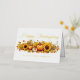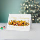 Diese altmodische Ferienkarte bietet einen Vintagen zeichn von Orangenkürbis, Herbstlauben und niedlichen Herbstsonnenblumen. Nostalgische Glückwunschkarten mit Goldfolie-Skript Ihres Firmennamens und personalisierte berufliche Nachricht auf der Rückseite für Kunden und Freunde.