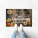 Glückliche Erntedankgourds über Rustikales Holz Fußmatte