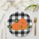 Niedliche orangefarbene Kürbis mit grünen Blätter auf schwarz-weißem Büffel kariert für den Erntedank Urlaub.