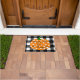 Begrüßen Sie Ihre Gäste diese Jahreszeit mit dieser trendy personalisierten Türmatte mit einem Büffel-Karohintergrund, einem Polkapunktkürbis und Ihrem Familiennamen.