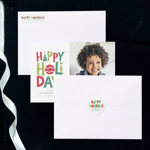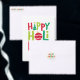 Mit dieser farbenfrohen Karte mit lustigen und spielerischen Illustrationen als Teil des Wortes "Happy Houses" können Sie fröhliche und helle Urlaubswünsche vermitteln. Inside hat einen Platz für personalisierte Begrüßung und Namen, aber auch links werden, leere.