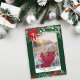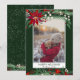 Senden Sie Ihre Weihnachtsgrüße mit diesem schicken und modernen grünen, roten, Winterweihnachtsstil mit hübscher handgemalter Poinsettia, grünen Ästen mit weißem Schnee, fügen Sie Ihr Foto mit einem modernen geometrischen Rahmen auf dunkelgrün. Alle Textfarben können bearbeitet werden.