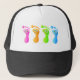 Eine Reihe von vier bunten menschlichen Abdrücken mit glücklichen Gesichtern.