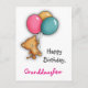 Glückliche Geburtstagskarte für die Enkelin, Dieses kleine Kätzchen schwebt mit ein paar bunten Ballons vorbei. Ein niedliches Katzendesign, das skurril und glücklich ist. Das Richtige passt zu jedem Anlass, an Ihre Enkelin zu denken, oder zu einem Geburtstagsgeschenk oder Goodie.