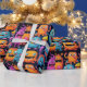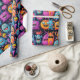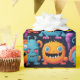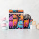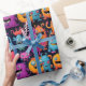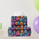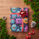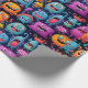 Glückliche Gruppe farbenfroher Monster auf schwarz Geschenkpapier