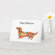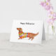 Feiern Sie die lustige Saison mit dieser niedlichen Halloween-Karte mit Leo der Dackel (oder Dackel/Wursthund), die jedem einen 'Happy Hallowiener' wünscht🎃 Die Karte ist innen leer für Ihre eigene Nachricht.