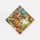 Ein niedliches Halloween und Herbst-Saison-Papierservietten. Ein Comic-Buchszenario mit einer familiären Kürbisschnitzerei am Tisch.