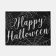 Grüßen Sie Ihre Halloween-Gäste und betrügen Sie oder treaters mit dieser festlichen Fußmatte! Ein modernes Skript "glückliches Halloween" kennzeichnend, das durch Spinnennetze umgeben wird, ist es ein großer Zusatz zu das Halloween-Dekor Ihres Zuhause! Ändern Sie die Hintergrundfarbe von Schwarzem zur Orange, oder jede mögliche Farbe in-between, indem sie "klickt, fertigen sie!" besonders an