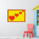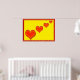 Vier rote glückliche Herzen auf gelbem Hintergrund. Gerahmt in Rot.