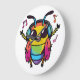 Glückliche Kakerlake mit Kopfhörern und Musik Große Wanduhr