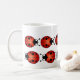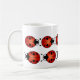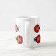 Marienkäfer oder Marienkäfer, zehn kleine Käfer, die ringsum diese Tasse in zwei Linien marschieren. Die Spitzenreihe stellt nach rechts gegenüber, und die untere Reihe ist das Gegenüberstellen verlassen. Die Marienkäfer sind rot und Orange mit schwarzen Flecken, schwarzer Kopf mit weißen Stellen und kräuselnde schwarze Fühler oder Antennen. In vielen Kulturen sind Marienkäfer glückliche Symbole des Glückes und Wünsche kommen wahr.