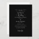 Elegante Schwarz-Weiß-Einladung zur Hochzeit. Beide Sets der Eltern sind aufgeführt. Glückliche Momente.