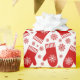 Netter roter und weißer Feiertags-Partyentwurf. Warme rote Winterhandschuhe und -schneeflocken. Merken Sie bitte, dass dieser Entwurf einen geringfügigen Ausgleich an der Mittelnaht hat.