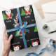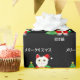 Glückliche Katze kleidete wie Sankt mit einem Weihnachtsbaum an. Spaß und einzigartiges Weihnachtsgeschenk, die Ihnen viel Glück holen. "Frohe Weihnachten," und "Maneki Neko (glückliche Katze)" auf japanisch.