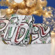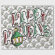 Dieses Bild ist eine Nachricht, die "Happy Holidays" in den Farben Weiß, Rot und Grün sagt. Ein einsamer Weihnachtsbälle in Grün, Weiß und Gold hängt. Das gleiche Bild ist als Hintergrund gekachelt. Dieses Verpackungspapier kommt in einer Reihe von Stilen, Farben und Größen.
