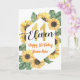 Spaß, fröhlich, elegant und farbenfroh Design Geburtstagskarte. Holen Sie sich diese fröhliche Karte, um Ihren Freund oder Ihre Familie zu feiern! Thema: Sonnenblume, botanisch. Farben, Gelb, Imitate Gold, Weiß. Stil: Elegant, Boho, fröhlich. Grafiken: Imitats Gold Nummer, Aquarellblume.