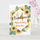 Spaß, fröhlich, elegant und farbenfroh Design Geburtstagskarte. Holen Sie sich diese fröhliche Karte, um Ihren Freund oder Ihre Familie zu feiern! Thema: Sonnenblume, botanisch. Farben, Gelb, Imitate Gold, Weiß. Stil: Elegant, Boho, fröhlich. Grafiken: Imitats Gold Nummer, Aquarellblume.