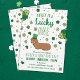 Mark deinen kleinen Meilenstein zum 1. Geburtstag mit einer glücklichen Geburtstagsparty! Diese "Glückliche eins" St. Patrick's Day Erstgeburtstag Einladung ist illustriert mit niedlichen grünen Kleeblättern und mit einem bezaubernden Dackel Hund, der einen irischen St. Patty's Day Top Hut spielt! Diese Einladung Set den perfekten Ton für die Geburtstagsparty Ihres Kindes. Das spielerische Design erweckt den Kern der Veranstaltung und eignet sich ideal zum Feiern ihres ersten Geburtstags mit einem festlichen März oder dem Thema des St. Patrick's Day. Mit seinen niedlichen und originellen Illustrationen wird diese Einladung Kinder und Erwachsene gleichermaßen begeistern. Laden Sie Freunde und Familie ein, um an der Feier teilzunehmen und gemeinsam bleibende Erinnerungen zu schaffen.