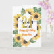 Spaß, fröhlich, elegant und farbenfroh Design Geburtstagskarte. Holen Sie sich diese fröhliche Karte, um Ihren Freund oder Ihre Familie zu feiern! Thema: Sonnenblume, botanisch. Farben, Gelb, Imitate Gold, Weiß. Stil: Elegant, Boho, fröhlich. Grafiken: Imitats Gold Nummer, Aquarellblume.
