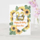 Spaß, fröhlich, elegant und farbenfroh Design Geburtstagskarte. Holen Sie sich diese fröhliche Karte, um Ihren Freund oder Ihre Familie zu feiern! Thema: Sonnenblume, botanisch. Farben, Gelb, Imitate Gold, Weiß. Stil: Elegant, Boho, fröhlich. Grafiken: Imitats Gold Nummer, Aquarellblume.
