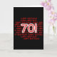 Schwarzer, roter und weißer glücklicher 70. Geburtstagsentwurf auf 70. Geburtstag T - Shirts, Karten, Tassen, Knöpfen und anderen 70. Geburtstagseinzelteilen.