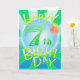 Glückliche 7. Geburtstagskarte. Farbe: Größtenteils Grüntöne und Blau. Grußinnere: Alles Gute zum Geburtstag, Mai dieser Tag ist immer ein spezielles, zum sich zu erinnern.