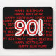 Schwarzer, roter und weißer glücklicher 90. Geburtstagsentwurf auf 90. Geburtstag T - Shirts, Karten, Tassen, Knöpfen und anderen 90. Geburtstagseinzelteilen.