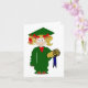 "HAPPY ABSCHLUSS" MÄDCHEN IN GRÜNER GAP UND GOWN HOLING HOCHSCHULDIPLOMA