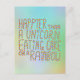 Glücklicher als ein Einhorn, der auf einem Regenbo Postkarte