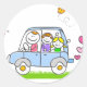glückliche Familie inklusive Vater Tochter und Sohn Reitwagen.
