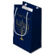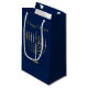Wickeln Sie Ihre Geschenke in der Art diese Ferienzeit mit unseren eleganten Chanukah Geschenktaschen ein. Diese einfachen aber ChicAusrüstungsbeschreibungen ein Marineblauhintergrund mit einem großen Imitatgoldmenorah in der Mitte. Über ihr liest "glückliches Chanukah". Entworfen durch Künstler © Tim Coffey und Susan Coffey.