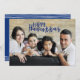 Stilvoller und niedlicher glücklicher Chanukka-Davidsstern Feiertags-Foto-Karte ist für Ihre ganze Freunde und Familie diese Ferienzeit perfekt. Fertigen Sie den Text mit Ihrem Familiennamen und dem Jahr besonders an und lagern Sie das Bild für ein Foto Ihrer Kinder, des Haustieres oder der ganzen Familie aus.