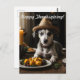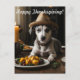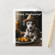 Glücklicher Erntedankend Niedliche Welpe mit Pilgr Postkarte