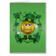 Eine niedliche Spaßkarte. glücklicher Flynn. ein irischer smiley. er trägt einen grünen Hut und Stiefel. er wird durch glückliches vierblättriges Kleeblatt. umgeben. wenn Sie dann lächeln mögen, ist diese Karte für Sie. vervollkommnen Sie für Tag St. Patricks