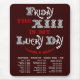 Ob Sie solch ein glückliches sind, fluchen Sie, dass Freitag das 13. glücklich ist, oder Sie einen Lauf des Glücks so schlecht gehabt haben, dass es ein heller Fleck durch Vergleich ist, dieser Entwurf durch Jamie McCanless lassen das notorische Datum umfassen. gotische Beschriftung des 19. Jahrhunderts und eine Liste von 13 Jahren von Freitag, den die 13. Daten dem Spaß hinzufügen. Wählen Sie Ihre Lieblingshintergrundfarbe und seien Sie ein Teil der Kunst!