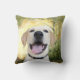 Junger gelber Labrador-Retriever mit einem großen glücklichen Lächeln auf seinem Gesichts-Fotohundeliebhaber Throwkissen