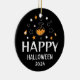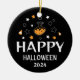 Happy halloween Sake-Ornament mit einem leicht anpassbaren Foto und ein lustiges Doodle mit Tränflasche, Sternen und Süßigkeiten in Orange, Schwarz und Weiß, passend zu anderen halloween Dekoration der gleichen Suite.