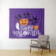Frohe Halloween Kürbis Gespenst Fledermäuse Text lila Tapestry. Coole, lustige und einzigartige Halloween Wall Art Décor Geschenkidee für jeden. Sie können die dunkle lila Farbe anpassen. Orange Halloween Kürbis Jack O'lanterns, weiße Geister und schwarze Fledermäuse.