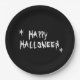 Frohe Halloween Schwarz-Weiß beängstigende spooky Typografie Spaß Halloween-Party Papier Teller. Weiße beängstigende Typografie, schwarzer Hintergrund, in vielen Stilvarianten erhältlich.