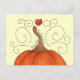 Ein niedlicher Cartoon Kürbis und rotes Herz mit kaleidoskopischer Textur und Wirbel auf einer Postkarte.