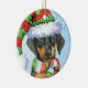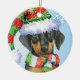 Feiern Sie die Ferienzeit mit einem niedlichen DobermannPinscherwelpen, der einen Strumpfhut und einen Schal unter Schneeflocken mit den Wörtern, glückliches Howlidays, auf der Rückseite trägt! Große Feriengeschenkidee für Dobermann-liebende Familie und Freunde.
