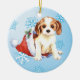 Feiern Sie die Ferienzeit mit einem niedlichen unbekümmerten Königcharles Spanielwelpen, der in einer Weihnachtsmannmütze unter Schneeflocken mit glücklichem Howlidays auf der Rückseite sitzt! Große Feriengeschenkidee für Kavalier-liebende Familie und Freunde.