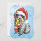 Feiern Sie die Ferienzeit mit einem niedlichen Miniaturpudelwelpen, der eine Weihnachtsmannmütze und einen Schal unter Schneeflocken mit den Wörtern, glückliches Howlidays auf der Rückseite trägt! Groß für Pudel-liebende Familie und Freunde.